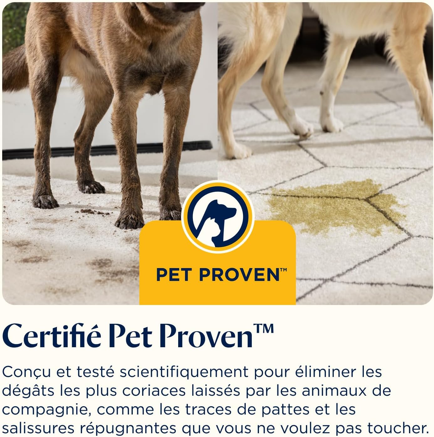 PERFORMANCES PET PROVEN : Taches de boue, urine et vomi… Ce nettoyeur a été testé en laboratoire par des chercheurs BISSELL sur des salissures causées par des animaux de compagnie, pour garantir des résultats fiables et puissants.